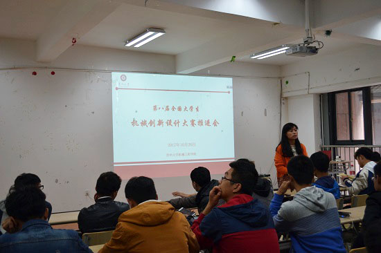 干老師首先向與會同學(xué)詳細(xì)講述了機(jī)創(chuàng)大賽的時間安排,她表示,今年11月份底我院將舉行院賽進(jìn)行方案評定,推選出優(yōu)秀的隊(duì)伍參加省賽,通過省賽后參加明年七月份舉行的國賽。她還強(qiáng)調(diào),院賽階段主要考察各參賽隊(duì)的參賽作品的設(shè)計(jì)背景、所運(yùn)用的技術(shù)、立意是否切題和是否具有創(chuàng)新點(diǎn)等。