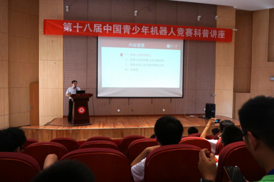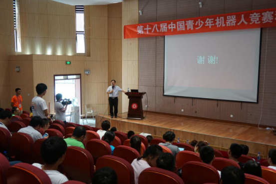 七月的筑城,萬木蔥蘢,涼爽怡人。2018年7月22日下午2:00,第十八屆中國青少年機(jī)器人競賽暨2018世界青少年機(jī)器人邀請賽進(jìn)程的第三日,貴州大學(xué)機(jī)械工程學(xué)院院長李少波教授應(yīng)邀于機(jī)械工程學(xué)院報告廳為全國的參賽選手們做了題為“機(jī)器人前沿技術(shù)”的科普講座。