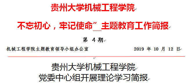 2019年10月12日晚上7點,機械工程學院黨委中心組在機械樓518會議室開展理論學習。學院黨委中心組全體黨員參加了學習,學習由學院黨委書記安明剛主持。