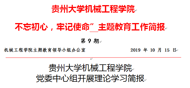 2019年10月15日下午1點,機械工程學院黨委中心組在機械樓518會議室開展理論學習。學院黨委中心組全體黨員參加了學習,學習由學院黨委書記安明剛主持。