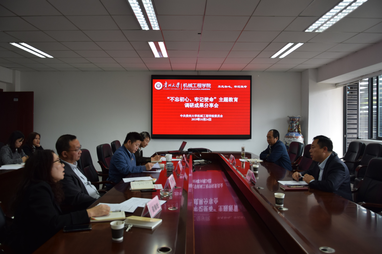 10月24日,機械工程學(xué)院黨委理論學(xué)習(xí)中心組在機械樓518召開“不忘初心、牢記使命”主題教育調(diào)研成果交流會。學(xué)院黨委書記安明剛,院長李少波,黨委副書記代祥社,副院長楊勤、何鋒,教育部重點實驗室副主任黃海松等黨政領(lǐng)導(dǎo)班子成員參加分享會。會議由安明剛主持。