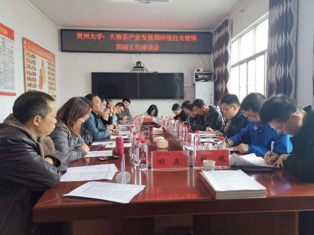 上午10:30,在平塘縣大塘鎮(zhèn)人民政府三樓會議室舉行座談會。會議上大塘鎮(zhèn)黨委副書記、鎮(zhèn)長趙中策簡要匯報大塘鎮(zhèn)茶產(chǎn)業(yè)發(fā)展?fàn)顩r。大塘鎮(zhèn)是一個具有茶園基地面積六萬多畝,其中可采摘茶園四萬多畝。通過近幾年的大力發(fā)展,依托本地茶產(chǎn)業(yè)優(yōu)勢,茶葉品質(zhì)優(yōu)良,產(chǎn)值高效,大塘鎮(zhèn)現(xiàn)已成為省級茶產(chǎn)業(yè)示范基地,使當(dāng)?shù)刎毨魪耐恋亓鬓D(zhuǎn)資金中直接獲取利益,大規(guī)模的茶產(chǎn)業(yè)密集型勞動力需求既增加了百姓的務(wù)工收入又提升培訓(xùn)技能。趙中策鎮(zhèn)長表示希望能夠借助與貴州大學(xué)合作平臺,通過邀請專家教師進行指導(dǎo),為大塘鎮(zhèn)基層文化人才創(chuàng)造良好的成長環(huán)境,提升大塘鎮(zhèn)的文化軟實力,更好的促進大塘鎮(zhèn)經(jīng)濟與社會發(fā)展。平塘縣茶產(chǎn)業(yè)辦公室副主任陳安明介紹了平塘產(chǎn)業(yè)的發(fā)展?fàn)顩r,現(xiàn)生產(chǎn)的茶葉主要銷往廣西,廣東等地。根據(jù)副主任陳安明介紹,大塘鎮(zhèn)茶葉實行無有機化學(xué)種植,原生態(tài)茶品質(zhì),茶葉在化學(xué)含量檢測中,其檢測出的化學(xué)成分遠(yuǎn)低于其他的城鎮(zhèn),贏得多家合作商。
