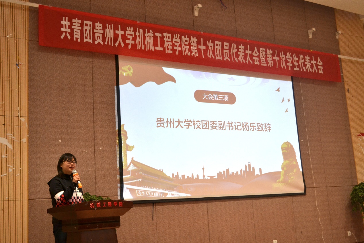 機械工程網(wǎng)站訊(記者 李曉成|攝影 徐馳)2020年11月17日,共青團貴州大學機械工程學院第十次團員代表大會暨第十次學生代表大會在貴州大學機械工程學院圓形報告廳順利召開,貴州大學校團委副書記楊樂、機械工程學院黨委書記安明剛、機械工程學院院長李少波、機械工程學院黨委副書記廖燁、機械工程學院學生科陳研老師、干雪梅老師、岑曉潔老師出席了此次會議,同時參加本次大會的還有來自各班的團員代表、學生代表。