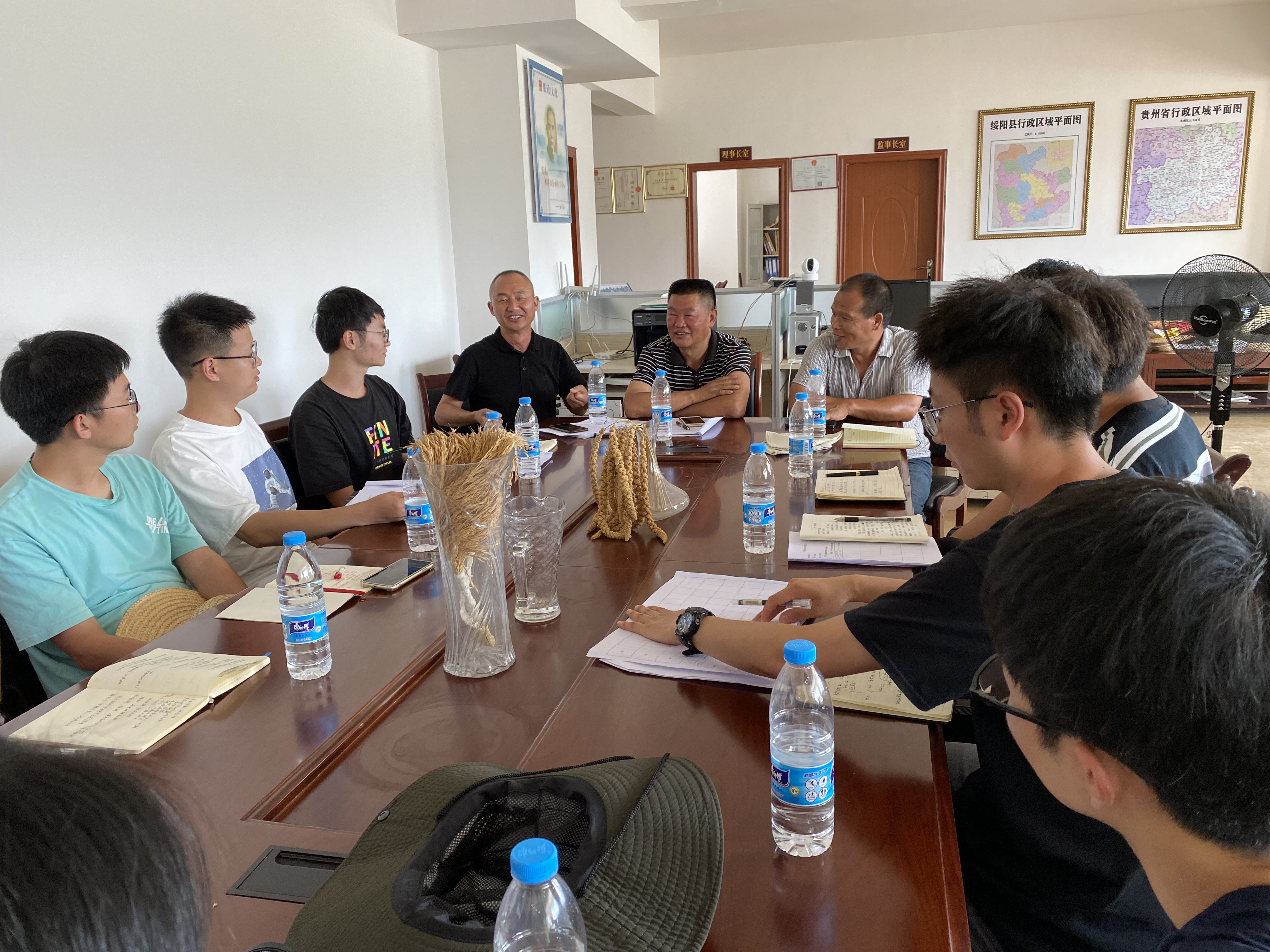 7月31日,暑期社會實踐第一站,于遵義市綏陽縣小輝農(nóng)機合作社開展集中調(diào)研。座談會上,合作社理事長介紹了合作社的基本狀況,接著,同學們有針對性的進行了訪談,內(nèi)容包括農(nóng)機合作社在促進水稻全程機械化發(fā)展中的作業(yè)現(xiàn)狀、制約其發(fā)展的因素、經(jīng)營管理狀況等,座談結(jié)束后,實踐隊師生觀摩了合作社農(nóng)機基地,合作社理事長介紹了農(nóng)機的使用情況,并讓帶隊老師與學生親身體驗與使用農(nóng)機,展示農(nóng)機的使用功能,維修組同學對合作社的農(nóng)業(yè)機械簡單做了維修和保養(yǎng)。接著前往湄潭縣開展調(diào)研活動。
