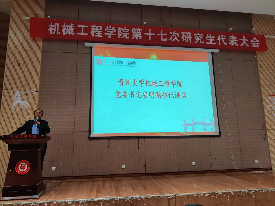 最后,貴州大學(xué)機(jī)械工程學(xué)院黨委書記安明剛向本次大會的勝利召開表示祝賀。他指出機(jī)械工程學(xué)院研究生會一直以來都是一支充滿青年活力、踏實(shí)勤懇,是有著優(yōu)秀作風(fēng)、優(yōu)秀傳統(tǒng)的優(yōu)秀團(tuán)體。研究生會組織了大量富有特色的活動,他希望學(xué)院的每一位同學(xué)都能做一名德、智、體、美、勞全面發(fā)展,熱愛祖國、奉獻(xiàn)社會的優(yōu)秀青年,希望學(xué)院研究生會在同學(xué)們可以起到表率作用,能夠向“肩負(fù)歷史使命,堅定前進(jìn)信心,立大志、明大德、成大才、擔(dān)大任,努力成為堪當(dāng)民族復(fù)興重任的時代新人”的方向而不懈努力,做新時代優(yōu)秀青年。