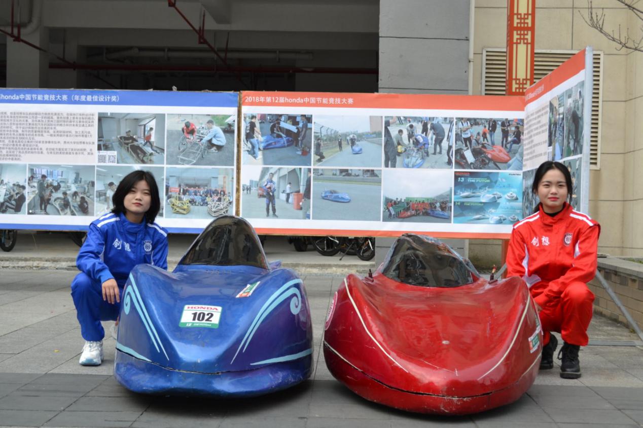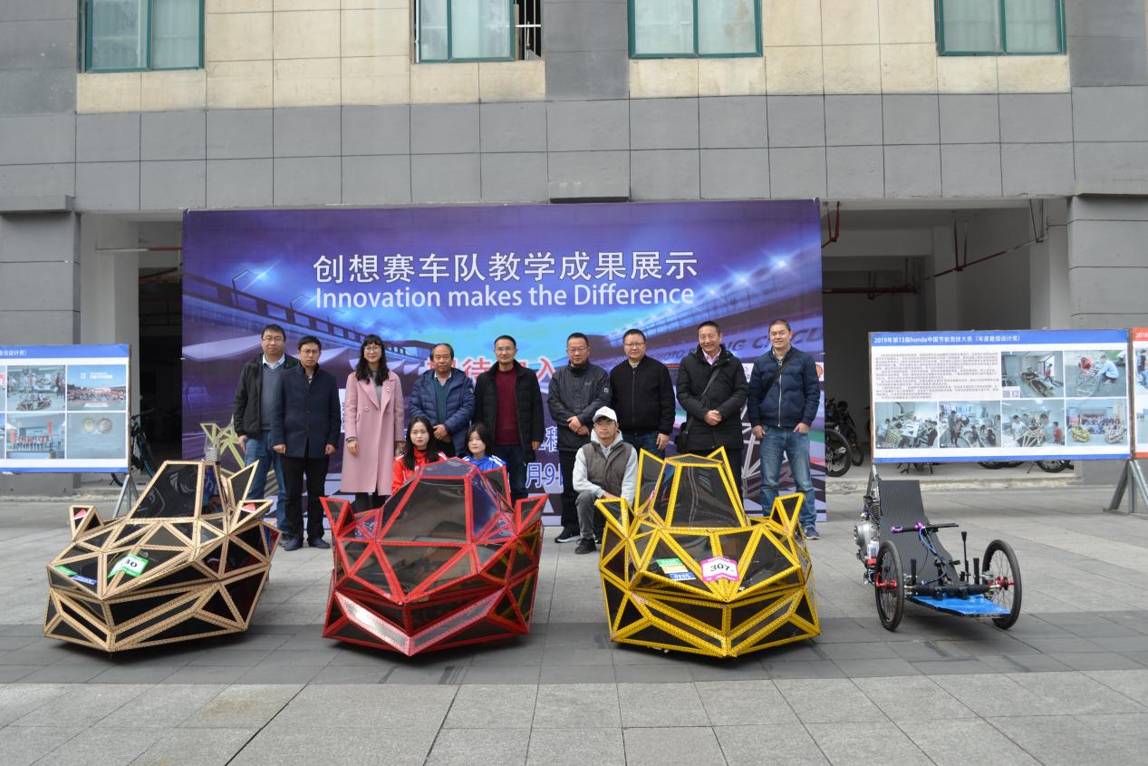 創(chuàng)想車(chē)隊(duì)展示了車(chē)隊(duì)的設(shè)計(jì)成果和車(chē)隊(duì)歷年參加的重大賽事及取得的優(yōu)異成果,如:中國(guó)大學(xué)生方程式汽車(chē)大賽、中國(guó)汽車(chē)工程學(xué)會(huì)大賽和Honda節(jié)能競(jìng)技大賽等參賽情況。