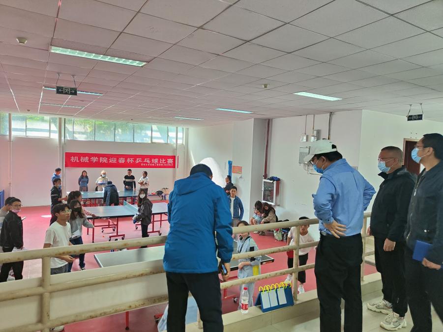 校黨委李建軍書(shū)記一行蒞臨活動(dòng)現(xiàn)場(chǎng)指導(dǎo)觀摩,并與同學(xué)們進(jìn)行親切交流。他對(duì)機(jī)械工程學(xué)院乒乓球賽十分贊賞,并寄語(yǔ)同學(xué)們要德智體美勞全面發(fā)展的厚望,通過(guò)體育鍛煉,強(qiáng)健體魄,舒展身心,增進(jìn)友誼,也祝愿同學(xué)們可以賽出風(fēng)格和水平。