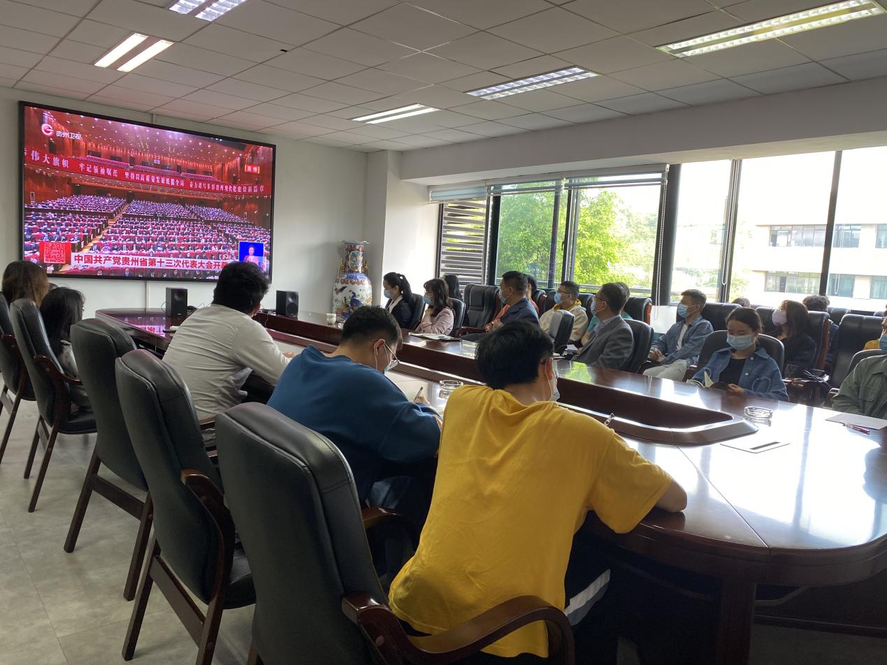 2022年4月25日,機械工程學院組織師生集中觀看中國共產黨貴州省第十三次代表大會開幕會,學院黨委書記滕召華、院長趙津、黨委副書記廖燁,師生黨員代表集中觀看、同步學習會議精神。