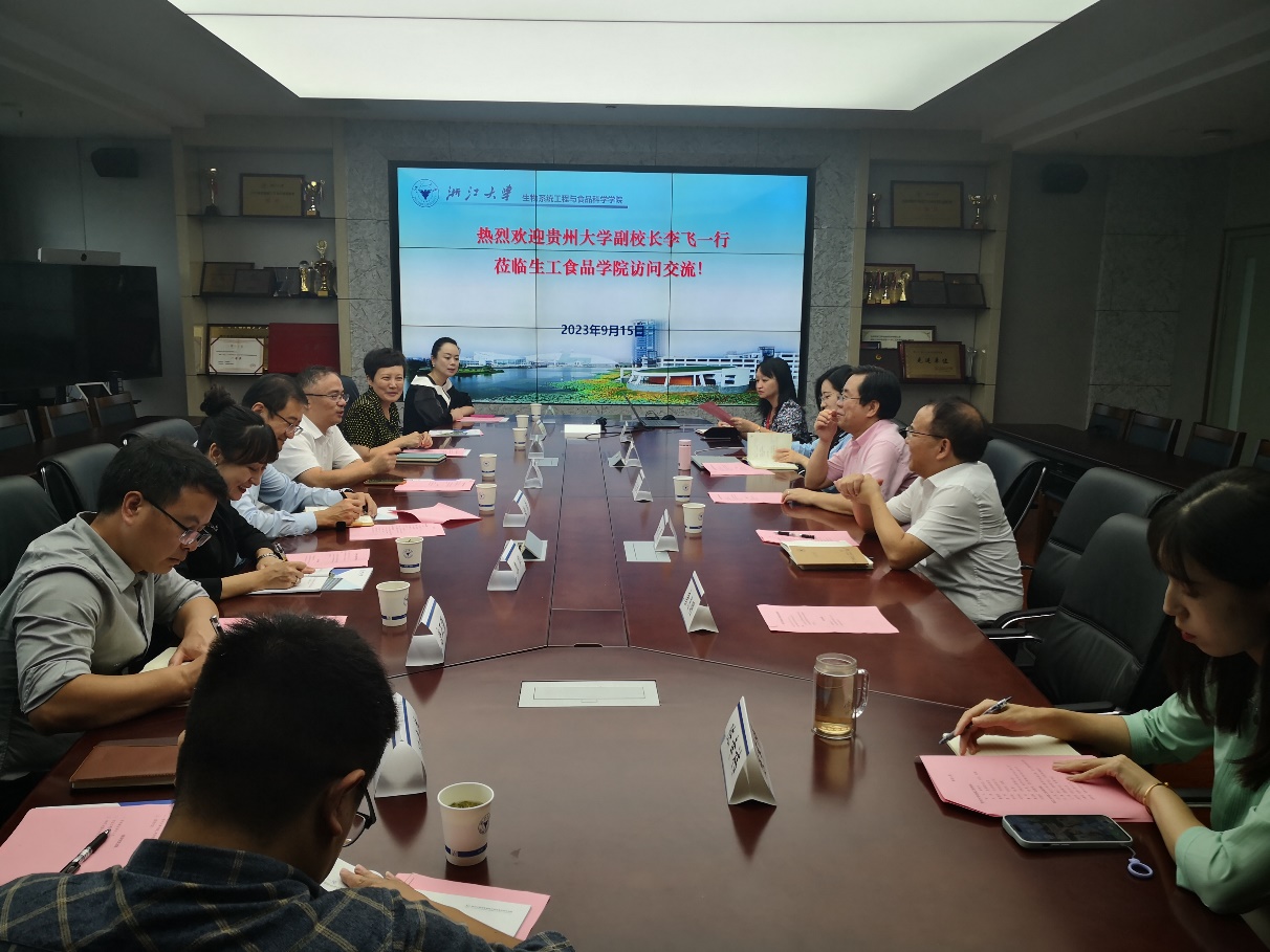 2023年9月15日,貴州大學(xué)李飛副校長(zhǎng)帶領(lǐng)機(jī)械工程學(xué)院院長(zhǎng)趙津、正處級(jí)組織員董蔚然、副書記廖燁、副院長(zhǎng)李家春等一行9人赴浙江大學(xué)機(jī)械工程學(xué)院和生物系統(tǒng)工程與食品科學(xué)學(xué)院交流訪問,并看望了機(jī)械工程學(xué)院在浙江大學(xué)攻讀博士的青年教師。