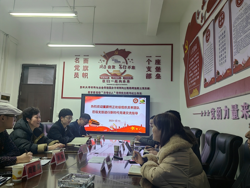 12月13日,貴州大學(xué)黨委正處級組織員董蔚然攜我支部支委成員與材料與冶金學(xué)院高分子材料與工程教研室教工黨支部開展黨建交流。材料與冶金學(xué)院黨委書記劉劍、正處級組織員熊玉竹以及高分子材料與工程教研室教工黨支部全體黨員參加活動?;顒佑?/span>全國高校“雙帶頭人”教師黨支部書記工作室負(fù)責(zé)人、高分子材料與工程教研室教工黨支部書記謝海波主持。