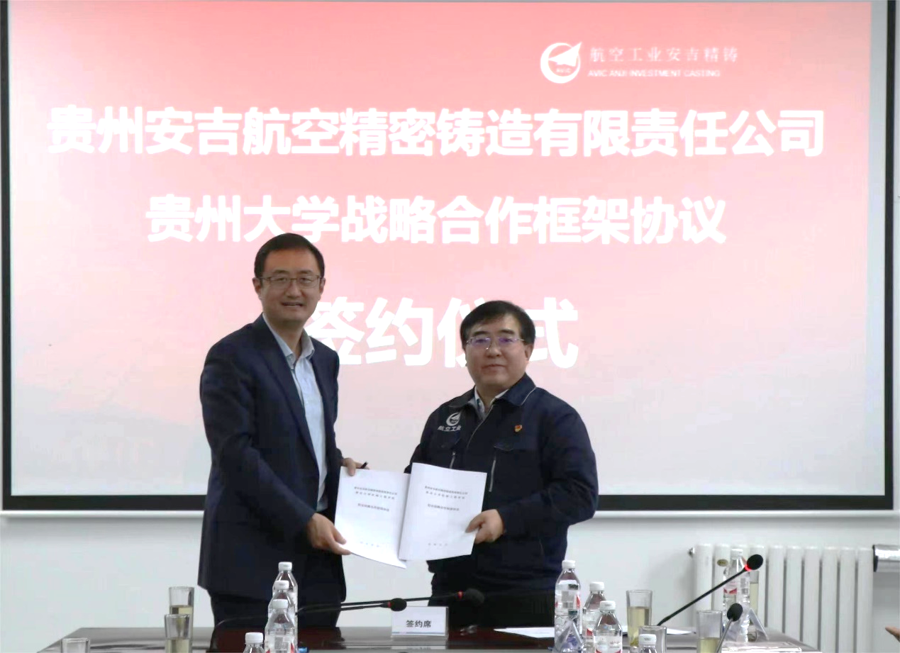 在會議致辭環(huán)節(jié),貴州省工業(yè)和信息化廳調(diào)研員楊娟女士,貴州省機械工程學(xué)會副理事長、貴州大學(xué)機械工程學(xué)院院長趙津先生和貴州省安吉航空精密鑄造有限公司黨委書記、董事長張建義先生分別發(fā)表熱情洋溢的致辭,為會議拉開了序幕。同時,貴州安吉航空精密鑄造有限公司與貴州大學(xué)簽署了戰(zhàn)略合作協(xié)議,為貴州省鑄造行業(yè)的合作與發(fā)展注入新動力。