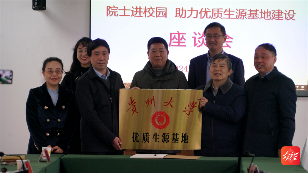宋寶安校長與高三學(xué)生一起栽種“院士樹”。隨后雙方在學(xué)校會議室進(jìn)行座談,并為銅仁一中送上“貴州大學(xué)優(yōu)質(zhì)生源基地”牌匾。