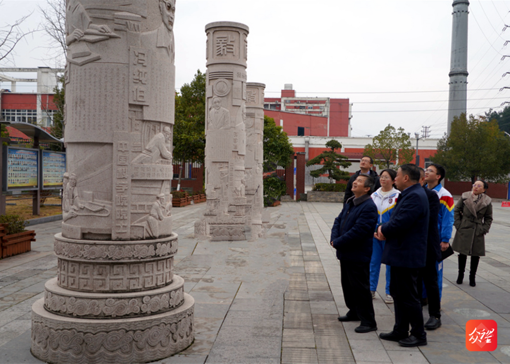 宋寶安校長一行在銅仁一中書記李茂潮,黨委副書記、校長舒崇進(jìn)的陪同下參觀了銅仁一中“院士柱”。