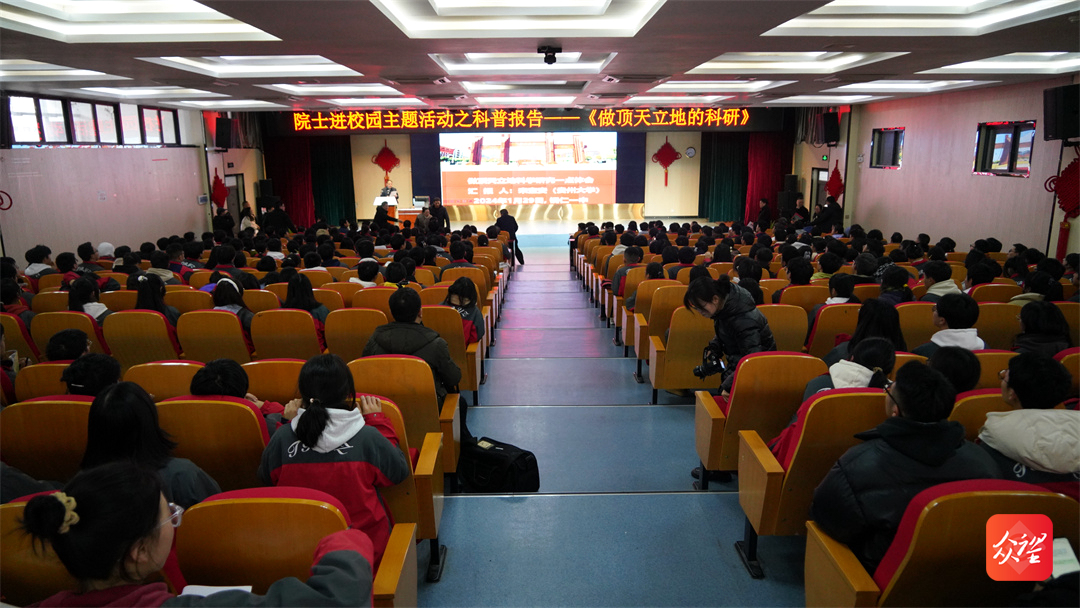校長宋寶安院士以《做頂天立地的科研》為題為同學(xué)們開展講座,他向銅仁一中的學(xué)子介紹了貴州大學(xué)的基本情況、發(fā)展優(yōu)勢和辦學(xué)前景,并結(jié)合自己的求學(xué)經(jīng)歷、工作經(jīng)驗(yàn)以及自身在綠色農(nóng)藥研究領(lǐng)域的經(jīng)歷指出,農(nóng)藥的發(fā)展對于農(nóng)業(yè)發(fā)展具有至關(guān)重要的作用,當(dāng)前我國面臨復(fù)雜多變的國際環(huán)境,糧食安全是國家安全的重要保障,強(qiáng)調(diào)要保證糧食安全,就必須要大力推動我國農(nóng)業(yè)獨(dú)立發(fā)展和科技創(chuàng)新,以此告訴大家一個人的成功必須扎根祖國大地,必須胸懷“國之大者”,心系“民之所向”。最后,他寄語廣大師生要“學(xué)會感恩,學(xué)會堅(jiān)持,學(xué)會團(tuán)結(jié),增強(qiáng)志氣、骨氣、底氣,做頂天立地的科學(xué)研究,以實(shí)現(xiàn)中華民族偉大復(fù)興為己任,不負(fù)韶華、不負(fù)夢想?!?/span>