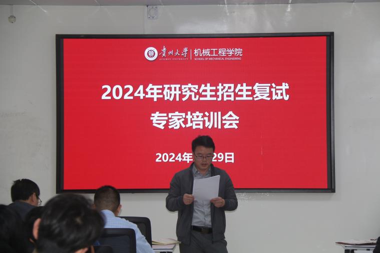 為保證研究生復(fù)試工作有序、規(guī)范,2024年3月29日中午13點,機械工程學(xué)院在機械樓416教室召開了2024年研究生復(fù)試專家培訓(xùn)會。會議由唐正強副院長主持,學(xué)院班子成員、研究生科、復(fù)試專家等相關(guān)人員等共計59人參會。