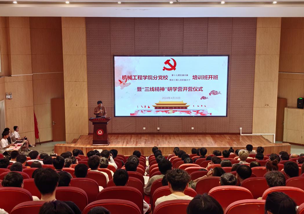 2024年4月16日,機(jī)械工程學(xué)院召開分黨校第十九期黨員發(fā)展對(duì)象、第四十期入黨積極分子培訓(xùn)班開班暨“三線精神”研學(xué)營(yíng)開營(yíng)儀式。學(xué)院領(lǐng)導(dǎo)班子、黨建負(fù)責(zé)人、各黨支部書記、學(xué)生科、研究生輔導(dǎo)員、全體入黨積極分子、發(fā)展對(duì)象培訓(xùn)班學(xué)員約300人參加,儀式由正處級(jí)組織員董蔚然主持。