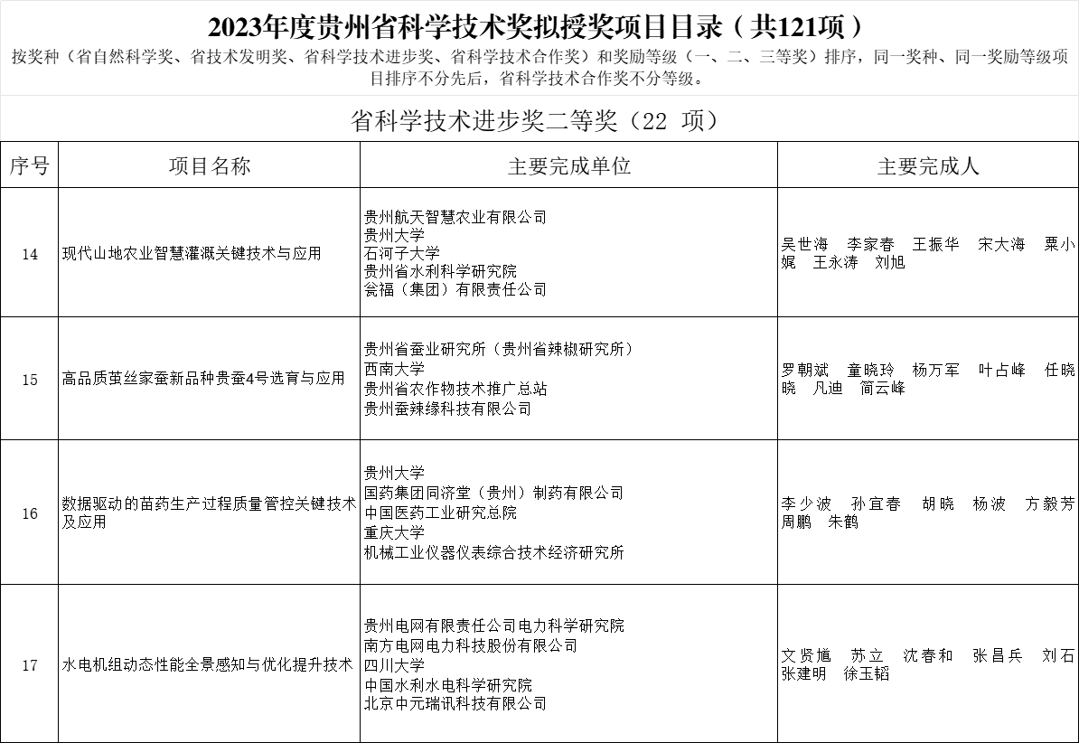 2024年3月,2023年度貴州省科技進(jìn)步獎(jiǎng)擬授獎(jiǎng)項(xiàng)目公示發(fā)布,我支部書記周鵬同志所在團(tuán)隊(duì)項(xiàng)目“數(shù)據(jù)驅(qū)動(dòng)的苗藥生產(chǎn)過程質(zhì)量管控關(guān)鍵技術(shù)及應(yīng)用”獲貴州省科技進(jìn)步二等獎(jiǎng)(周鵬排名第六)。多年來,周鵬所在團(tuán)隊(duì)與國(guó)藥集團(tuán)同濟(jì)堂(貴州)制藥有限公司展開了深入而持久的合作,一同申報(bào)并完成了工信部智能制造新模式應(yīng)用項(xiàng)目——中藥制劑全流程智能制造新模式應(yīng)用。基于該項(xiàng)目的成功實(shí)施,項(xiàng)目成果獲2022年度教育部科技進(jìn)步二等獎(jiǎng)1項(xiàng),并獲得中國(guó)國(guó)際大數(shù)據(jù)產(chǎn)業(yè)博覽會(huì)2023優(yōu)秀科技成果、貴州省十大優(yōu)秀科技成果等榮譽(yù)。