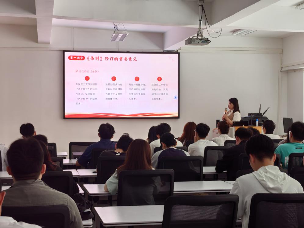 在學(xué)習(xí)分享環(huán)節(jié),同學(xué)們從黨員的身份、職責(zé)的角度,結(jié)合大學(xué)生學(xué)習(xí)生活實(shí)際做學(xué)習(xí)心得分享。大家紛紛表示,在今后的學(xué)習(xí)和生活中,將加強(qiáng)對《條例》的學(xué)習(xí),在嚴(yán)守紀(jì)律的同時(shí),主動(dòng)亮身份、做表率、爭先鋒、盡職責(zé),爭做優(yōu)秀黨員。