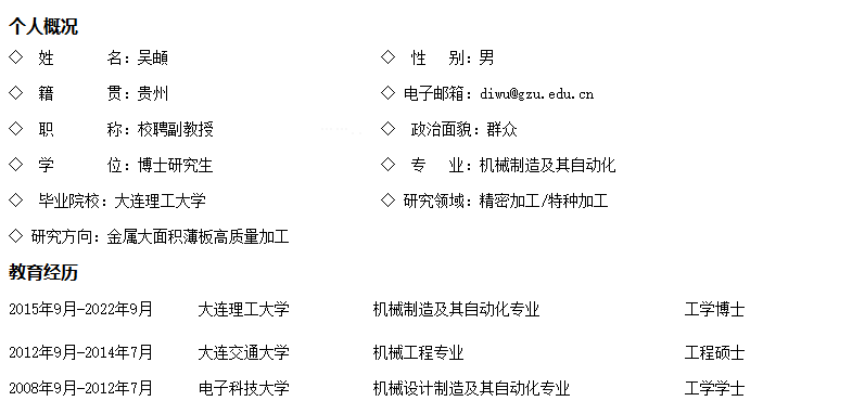 ◇ 2023年5月至今,貴州大學(xué),主持貴州大學(xué)引進(jìn)人才科研項(xiàng)目“純銅平面超薄飛層化學(xué)機(jī)械研磨表面面形誤差控制原理研究”(責(zé)大人基合字(2022)55號),負(fù)責(zé)人:吳頔