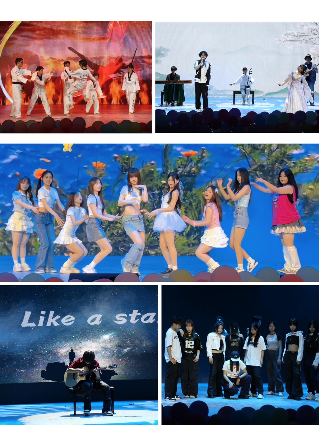 互動(dòng)環(huán)節(jié)結(jié)束后,來到第二篇章《成長》,由各學(xué)生社團(tuán)帶來精彩表演,舞蹈《STAY THIS WAY》激情澎湃,跆拳道表演《炫動(dòng)青春》身姿矯健有力,樂器合奏《蘭亭序》悠揚(yáng)婉轉(zhuǎn),舞蹈《RISING》盡顯風(fēng)采,吉他指彈《LIKE A STAR》憑借高超的技術(shù)獲得全場喝彩。