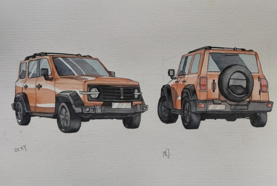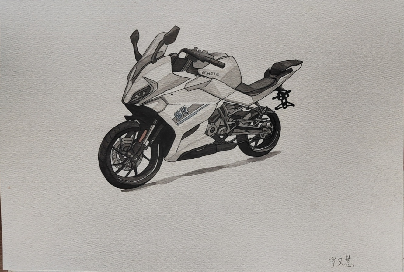 這幅水彩手繪摩托車畫作,巧妙地融合了水彩的輕盈與摩托車的力量感。畫中是一輛獨具特色的摩托車,其流暢的線條和鮮明的色彩使得整個畫面充滿動感,其金屬質感通過水彩的透明度和層次感得到了較好的表現(xiàn)。