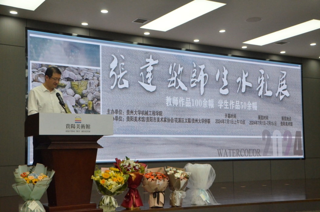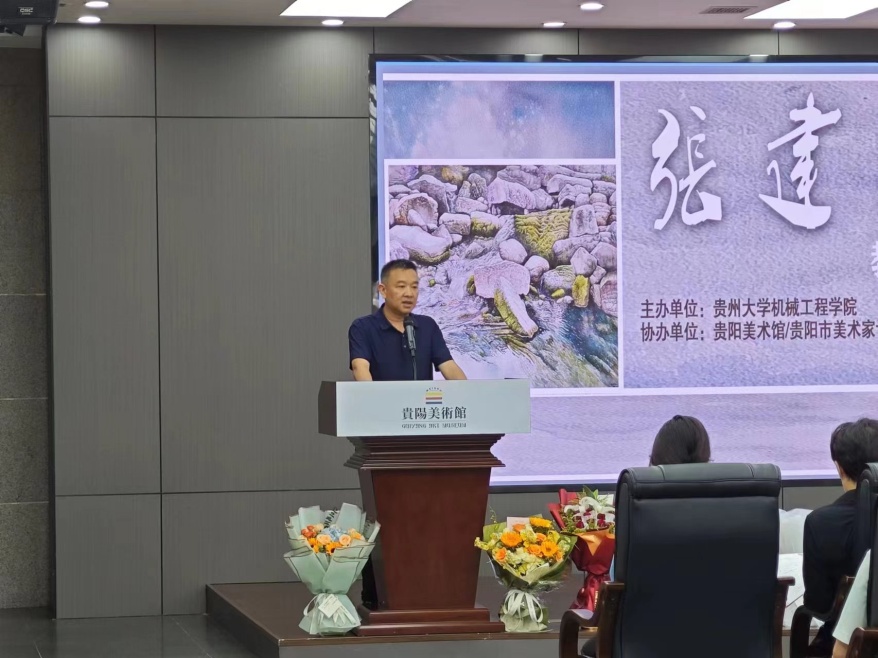 貴州大學機械工程學院院長趙津致辭中介紹了畫展情況、貴州大學機械工程學院和工業(yè)設計專業(yè)的情況以及張建敏老師的藝術成就。認為此次畫展是對工程類專業(yè)學生開展美育的一個積極實踐。
