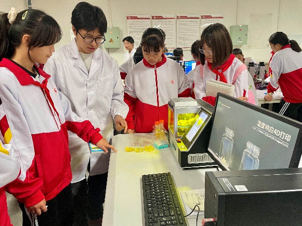 在智能制造實(shí)驗(yàn)室,學(xué)生們觀看了機(jī)器人自動(dòng)焊接的演示,了解了機(jī)器人在工業(yè)制造中的廣泛應(yīng)用和自動(dòng)化工作流程。隨后,學(xué)生們來(lái)到智能網(wǎng)聯(lián)汽車展區(qū)體驗(yàn)無(wú)人駕駛技術(shù),通過(guò)講解員的介紹初步了解了汽車互聯(lián)技術(shù)在未來(lái)生活中的重要作用。農(nóng)機(jī)實(shí)驗(yàn)室的展示進(jìn)一步擴(kuò)展了學(xué)生的視野,展示了貴州特有的“山地拓荒者”、“智能種植家”等農(nóng)機(jī)設(shè)備,生動(dòng)展示了現(xiàn)代農(nóng)業(yè)機(jī)械在不同地形中的應(yīng)用場(chǎng)景,讓學(xué)生們體會(huì)到科技對(duì)農(nóng)業(yè)的巨大推動(dòng)作用。在金屬增材制造實(shí)驗(yàn)室,學(xué)生們目睹了金屬3D打印過(guò)程,了解到3D打印技術(shù)在制造業(yè)的變革性意義。最后,在生物制造實(shí)驗(yàn)室,同學(xué)們觀看了生物3D打印的演示,從醫(yī)工交叉應(yīng)用角度,了解3D打印在生物組織和醫(yī)學(xué)工程中的廣泛應(yīng)用。