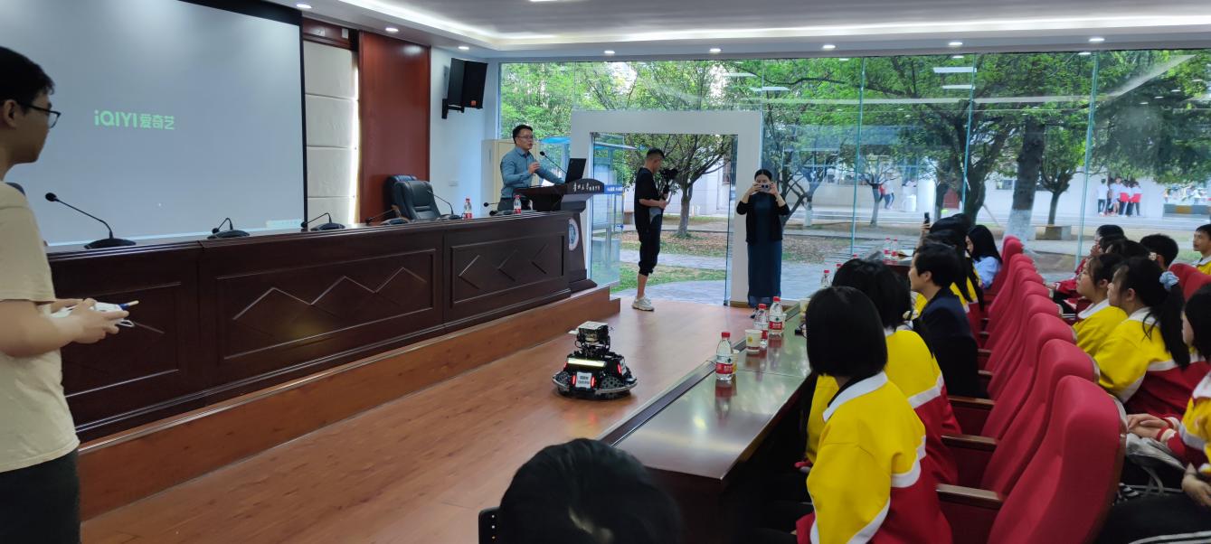 為充分發(fā)揮學(xué)者影響力,普及推動(dòng)科學(xué)知識,我院副院長唐正強(qiáng)教授于4月17日走進(jìn)貴州大學(xué)附屬中學(xué)為師生開展主題為“智能時(shí)代,智創(chuàng)未來”的科普講座。他通過生動(dòng)的視頻演示和PPT配合講解,深入淺出地介紹了人工智能、智能制造等前沿科技的發(fā)展趨勢及其對未來的影響和我院教師在智能技術(shù)領(lǐng)域的探索與實(shí)踐,并向同學(xué)們展示了我院學(xué)生制作的機(jī)器人,激發(fā)學(xué)生關(guān)注科技熱情。