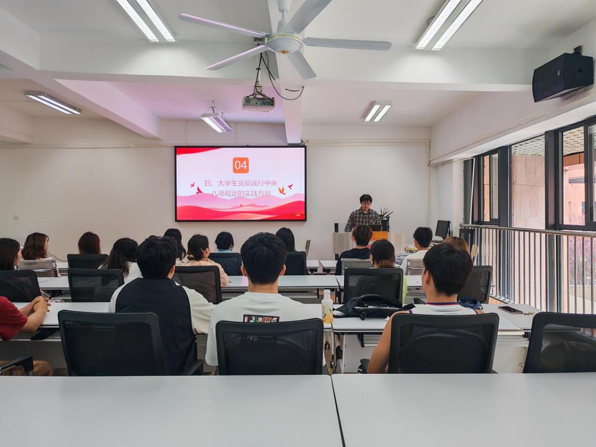 學(xué)生科趙麗芳老師帶領(lǐng)同學(xué)們深入學(xué)習(xí)中央八項(xiàng)規(guī)定出臺(tái)的相關(guān)背景、主要內(nèi)容和重要意義,引導(dǎo)同學(xué)們思考如何將中央八項(xiàng)規(guī)定融入到學(xué)習(xí)和生活中。學(xué)生黨員雷繽演結(jié)合自己的學(xué)習(xí)、生活和做學(xué)生干部工作的體會(huì)和感受,號(hào)召同學(xué)們要積極踐行中央八項(xiàng)規(guī)定。在學(xué)習(xí)上杜絕抄襲拼湊,認(rèn)真開展實(shí)驗(yàn),用真實(shí)的數(shù)據(jù)進(jìn)行論證,在學(xué)科競(jìng)賽上要勇攀高峰,提高創(chuàng)新能力和動(dòng)手能力;在生活上,要踐行勤儉節(jié)約,堅(jiān)持“光盤行動(dòng)”、樹立理性消費(fèi)意識(shí),不鋪張浪費(fèi);在學(xué)生工作上,開展活動(dòng)提前做好詳細(xì)的規(guī)劃和預(yù)算,避免超支浪費(fèi),合理利用學(xué)?,F(xiàn)有的場(chǎng)地和設(shè)備,減少不必要的開支,在與同學(xué)溝通交流時(shí),摒棄官僚作風(fēng),真心實(shí)意為同學(xué)服務(wù),提高工作效率,切實(shí)解決同學(xué)們?cè)趯W(xué)習(xí)和生活中遇到的實(shí)際問(wèn)題。