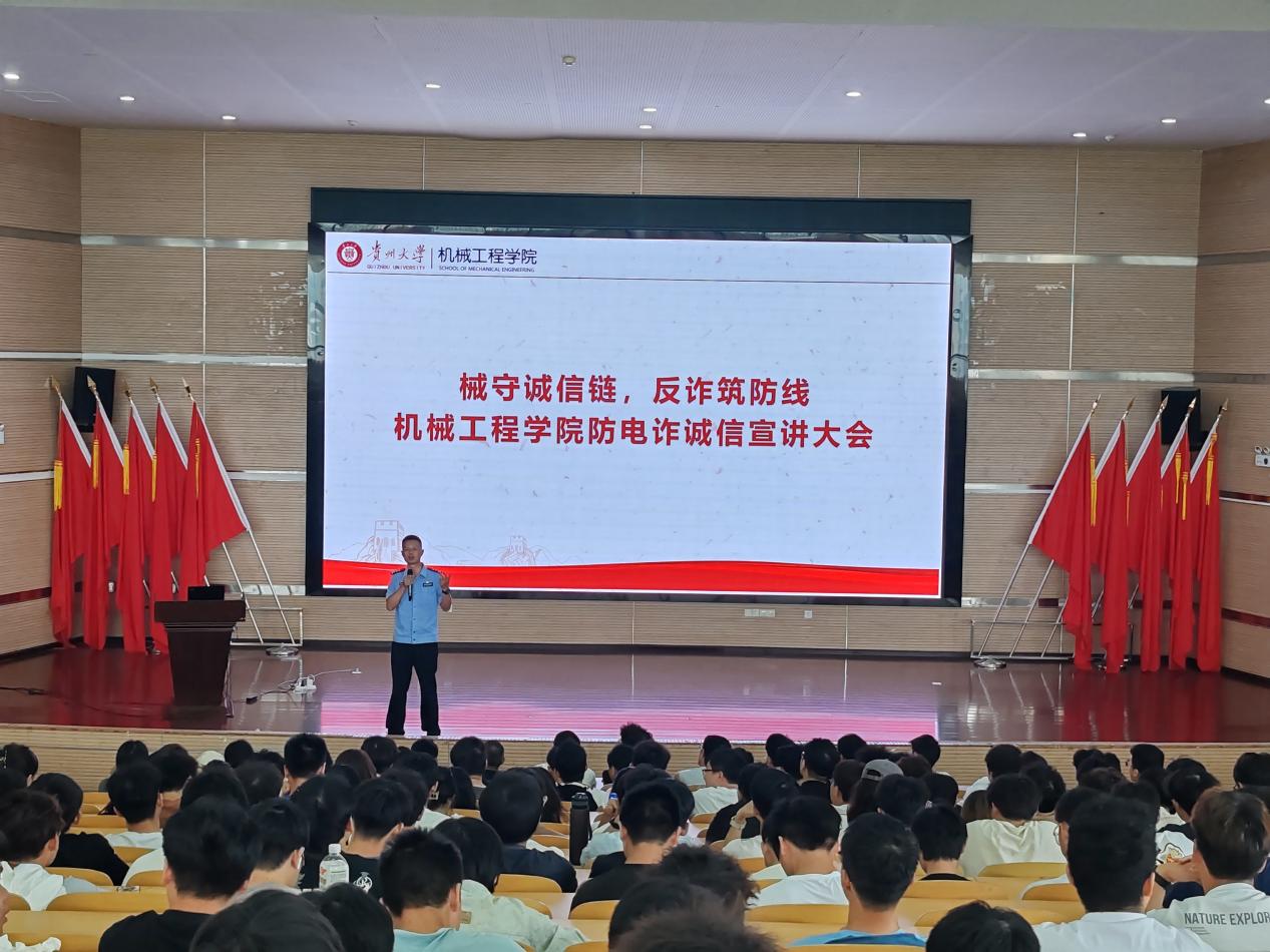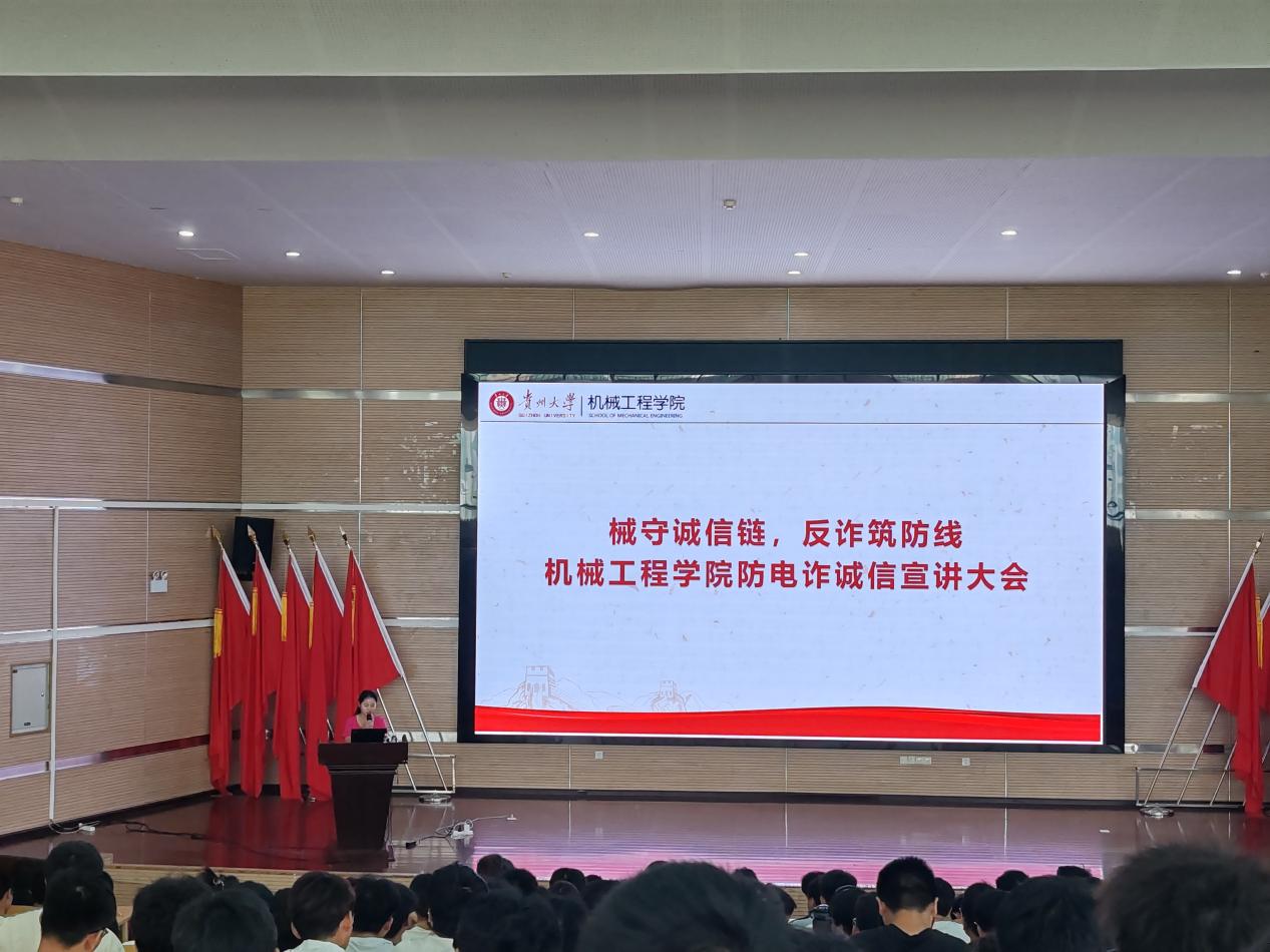 為提升機械學(xué)子的網(wǎng)絡(luò)安全意識,強化誠信觀念,營造安全穩(wěn)定的校園環(huán)境,2025年6月12日中午,機械工程學(xué)院邀請松山派出所副所長趙普林警官開展“械守誠信鏈,反詐筑防線”宣講大會,大會由學(xué)生科輔導(dǎo)員楊朵主持,學(xué)生科副科長王嘉斌及全體寢室長、健康委員、生活委員、安全委員參會。