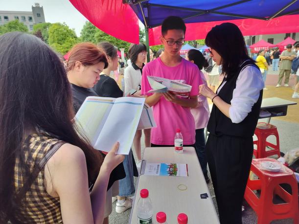 上午,廖燁副書記和唐正強(qiáng)副院長(zhǎng)等一行在咨詢現(xiàn)場(chǎng)耐心細(xì)致地為到場(chǎng)家長(zhǎng)及高三學(xué)子就學(xué)校整體情況、專業(yè)設(shè)置、人才培養(yǎng)、就業(yè)前景以及歷年招生政策等熱點(diǎn)問題進(jìn)行解答。咨詢臺(tái)旁,大二學(xué)生劉振豪現(xiàn)場(chǎng)演示了他參與設(shè)計(jì)制作的RoboMaster機(jī)甲大師高校聯(lián)盟賽—步兵對(duì)抗賽全國一等獎(jiǎng)機(jī)器人,通過動(dòng)態(tài)演示與講解,點(diǎn)燃了同學(xué)們對(duì)科技的探索和報(bào)考我校相關(guān)專業(yè)的濃厚興趣。