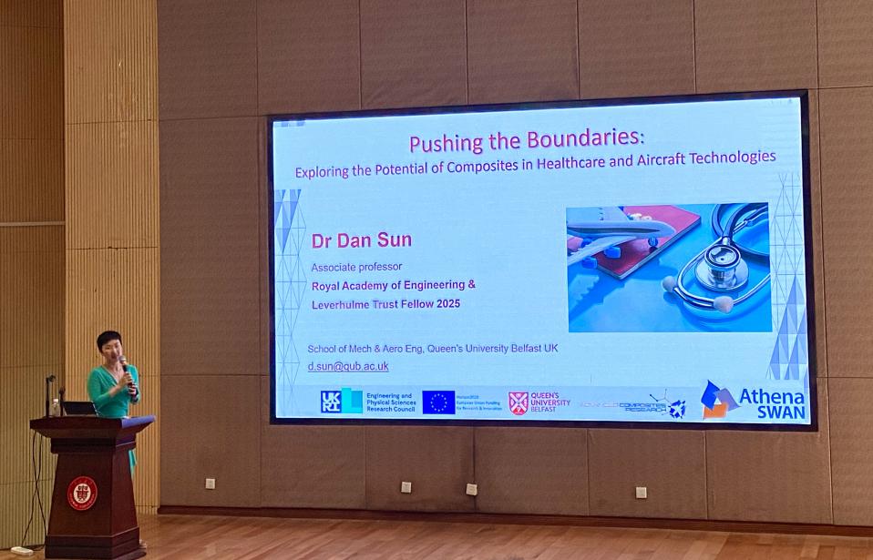 孫丹副教授聚焦先進(jìn)復(fù)合材料的前沿應(yīng)用。在醫(yī)療方面,她開發(fā)的智能復(fù)合植入材料不僅能替代受損骨骼,更能實(shí)現(xiàn)精準(zhǔn)藥物釋放和可控殺菌,為復(fù)雜骨病治療提供全新解決方案;在航空領(lǐng)域,其團(tuán)隊(duì)針對(duì)新一代可回收飛機(jī)材料,創(chuàng)新性地優(yōu)化了加工工藝,顯著提升制造效率與環(huán)保性能。兩項(xiàng)研究均體現(xiàn)了復(fù)合材料技術(shù)對(duì)產(chǎn)業(yè)升級(jí)和人類健康的積極推動(dòng)作用。