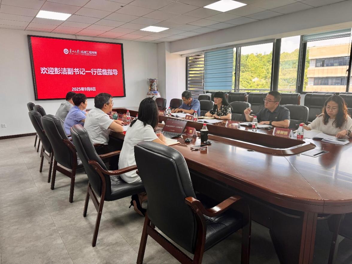 2025年9月8日上午,貴州大學(xué)黨委副書(shū)記彭潔、黨委學(xué)生工作部部長(zhǎng)龍汶、副部長(zhǎng)譚麗娟、黨委研究生工作部部長(zhǎng)張小彬一行到機(jī)械工程學(xué)院指導(dǎo)調(diào)研“一站式”學(xué)生社區(qū)建設(shè)工作。學(xué)院院長(zhǎng)馮毅雄、正處級(jí)組織員董蔚然、黨委副書(shū)記廖燁、副院長(zhǎng)唐正強(qiáng)及“一站式”學(xué)生社區(qū)建設(shè)專(zhuān)班相關(guān)人員參加調(diào)研活動(dòng)。
