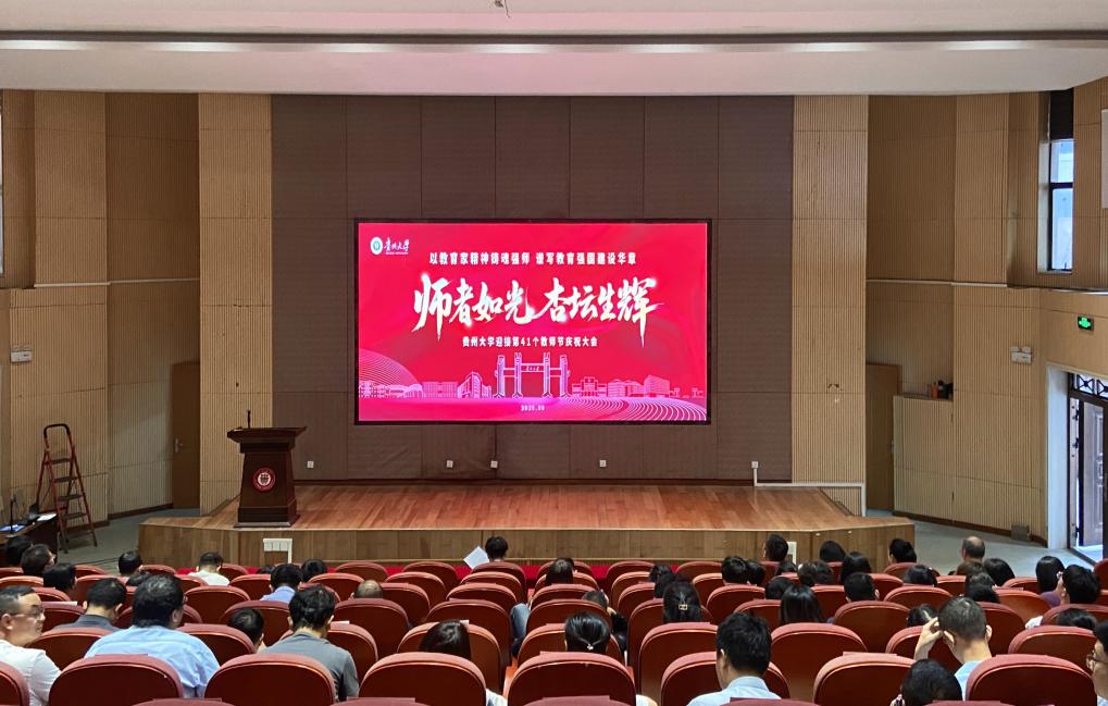 慶祝大會上,一批在教育教學、科研創(chuàng)新、管理服務等方面表現(xiàn)突出的優(yōu)秀教師和先進集體受到表彰,貴州大學黨委書記楊未為我院馮毅雄教授領銜申報獲得的第四批全國高校黃大年式教師團隊頒獎。