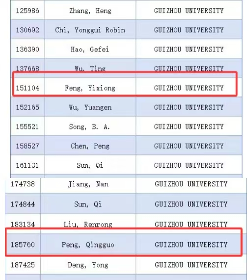 2025年9月19日,美國斯坦福大學(xué)(Stanford University)與愛思唯爾(Elsevier)聯(lián)合發(fā)布了第八版《全球前2%頂尖科學(xué)家榜單2025》(World’s Top 2% Scientists 2025)。該榜單依托Scopus數(shù)據(jù)庫的引用數(shù)據(jù)進行系統(tǒng)分析,從全球近700萬名科學(xué)家中,依據(jù)“生涯影響力”和“年度影響力”兩項指標(biāo),遴選出世界排名前2%的頂尖科學(xué)家。其中,中國有12374位學(xué)者入選“終身榜”,31685位學(xué)者入選 “2025 年度榜”。我院馮毅雄教授、彭慶國副教授亦榜上有名,成功入選2025年全球前2%頂尖科學(xué)家“年度影響力”榜單,如圖1所示。