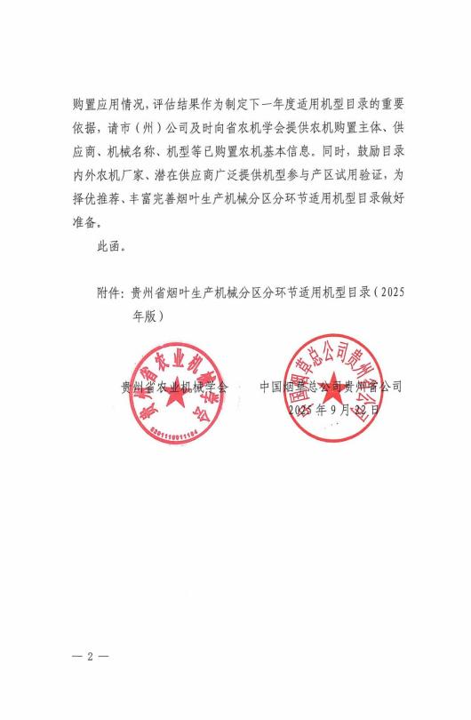 該目錄的發(fā)布將持續(xù)推動(dòng)農(nóng)機(jī)農(nóng)藝的深度融合,促進(jìn)支撐貴州煙葉高質(zhì)量發(fā)展現(xiàn)代化建設(shè)的農(nóng)機(jī)裝備再添新質(zhì)。
