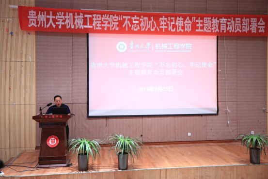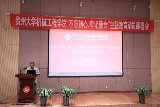 2019年9月25日,貴州大學(xué)機(jī)械工程學(xué)院黨委“不忘初心,牢記使命”主題教育部署會(huì)在機(jī)械樓圓形報(bào)告順利召開(kāi)。校巡回指導(dǎo)小組四組組長(zhǎng)許道云、成員李臣宇以及學(xué)院及現(xiàn)代制造重點(diǎn)實(shí)驗(yàn)室在家處級(jí)領(lǐng)導(dǎo)干部、院黨委委員、各黨總支、黨支部委員、全體師生黨員參加了此次會(huì)議。會(huì)議由學(xué)院黨委院長(zhǎng)李少波主持。