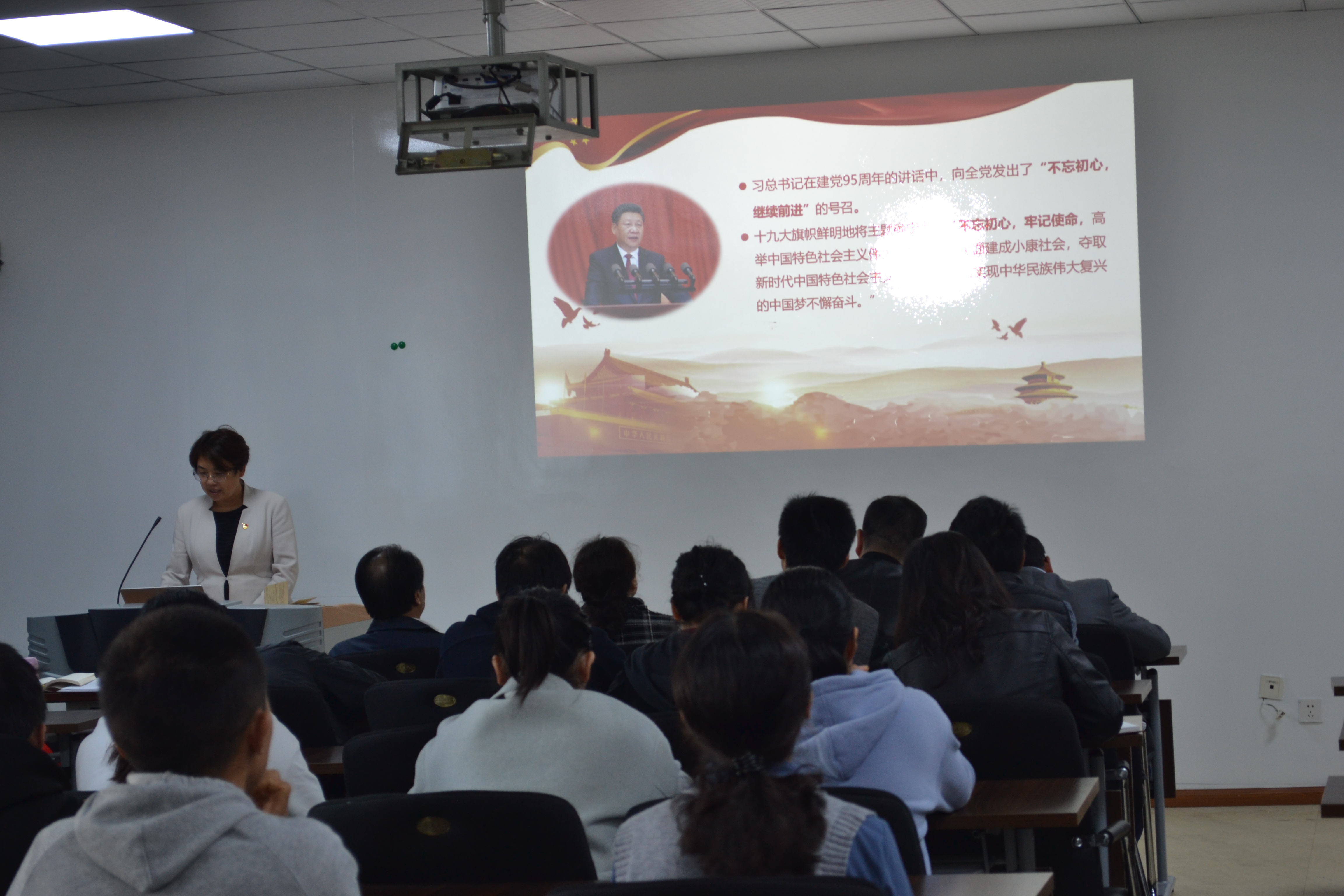 機(jī)械工程網(wǎng)訊(報(bào)道 胡佳 |攝影 劉艷)11月4日上午十點(diǎn),貴州大學(xué)副校長張覃教授在機(jī)械樓416教室為分管部門和聯(lián)系學(xué)院師生黨員代表講授題為《不忘初心、牢記使命,增強(qiáng)黨性修養(yǎng),提高國際化辦學(xué)水平》專題黨課。機(jī)械工程學(xué)院、電氣工程學(xué)院、資源與環(huán)境工程學(xué)院、生命科學(xué)學(xué)院、工程訓(xùn)練中心、國際交流與合作處、東盟研究院等張覃副校長聯(lián)系學(xué)院和分管部門的黨員領(lǐng)導(dǎo)干部和師生黨員代表參加學(xué)習(xí)。