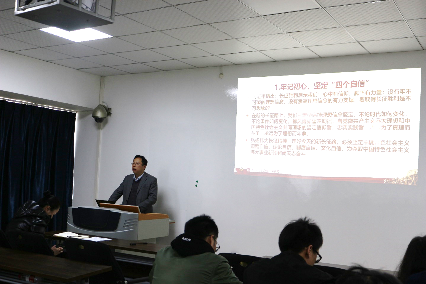 李少波院長進(jìn)行了“不忘初心、牢記使命,弘揚(yáng)長征精神,艱苦奮斗勇往直前,沖擊學(xué)科發(fā)展新高地”主題授課。他提出,我們黨員同志要不忘初心,在新的征程路上,弘揚(yáng)長征精神,積極擔(dān)當(dāng)作為。一是要牢記初心堅(jiān)定“四個自信”;二是要堅(jiān)持實(shí)事求是認(rèn)真踐行“三嚴(yán)三實(shí)”的作風(fēng);三是要發(fā)揚(yáng)無私無畏敢于擔(dān)當(dāng)?shù)挠⑿壑髁x;四是要忠實(shí)踐行宗旨和黨的群眾路線;五是要強(qiáng)化“四個意識”堅(jiān)決維護(hù)黨的團(tuán)結(jié)統(tǒng)一;六是要大力弘揚(yáng)艱苦奮斗勤儉節(jié)約的光榮傳統(tǒng);七是要始終堅(jiān)持中國共產(chǎn)黨的領(lǐng)導(dǎo)。新時(shí)代開啟新征程,新征程呼喚新?lián)?dāng)新作為。我們要以高度的政治責(zé)任感和歷史使命感,抓好擔(dān)當(dāng)作為的落實(shí)落地;要弘揚(yáng)長征精神,艱苦奮斗勇往直前,追求一流,沖擊學(xué)科發(fā)展新高地。