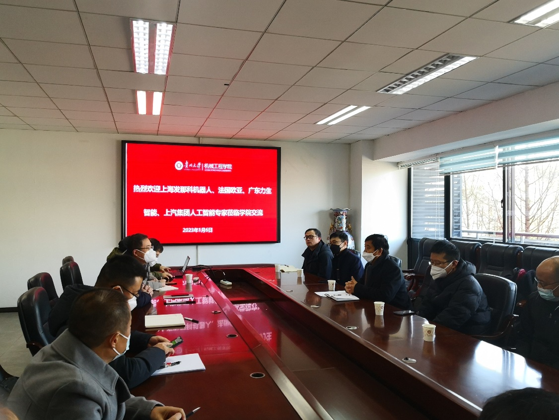 2023年1月6日下午,貴州大學(xué)機(jī)械工程學(xué)院與上海發(fā)那科機(jī)器人、法國歐亞集團(tuán)、廣東力生智能、上汽集團(tuán)人工智能實(shí)驗(yàn)室以及貴州省政府駐上海辦事處、貴陽市政府駐上海聯(lián)絡(luò)處在機(jī)械樓518會(huì)議室舉行合作交流洽談會(huì)。法國歐亞集團(tuán)董事長李貴生、上海發(fā)那科機(jī)器人市場(chǎng)拓展部副部長張海峰、廣東力生智能有限公司董事長張高強(qiáng)、上汽集團(tuán)人工智能實(shí)驗(yàn)室總經(jīng)理金忠孝、貴州省駐上海辦事處業(yè)務(wù)處副處長王海濤、貴陽市人民政府駐上海聯(lián)絡(luò)處梁華處長出席了會(huì)議,機(jī)械工程學(xué)院趙津院長、張大斌、蔡家斌、唐正強(qiáng)等教授參與了會(huì)議。