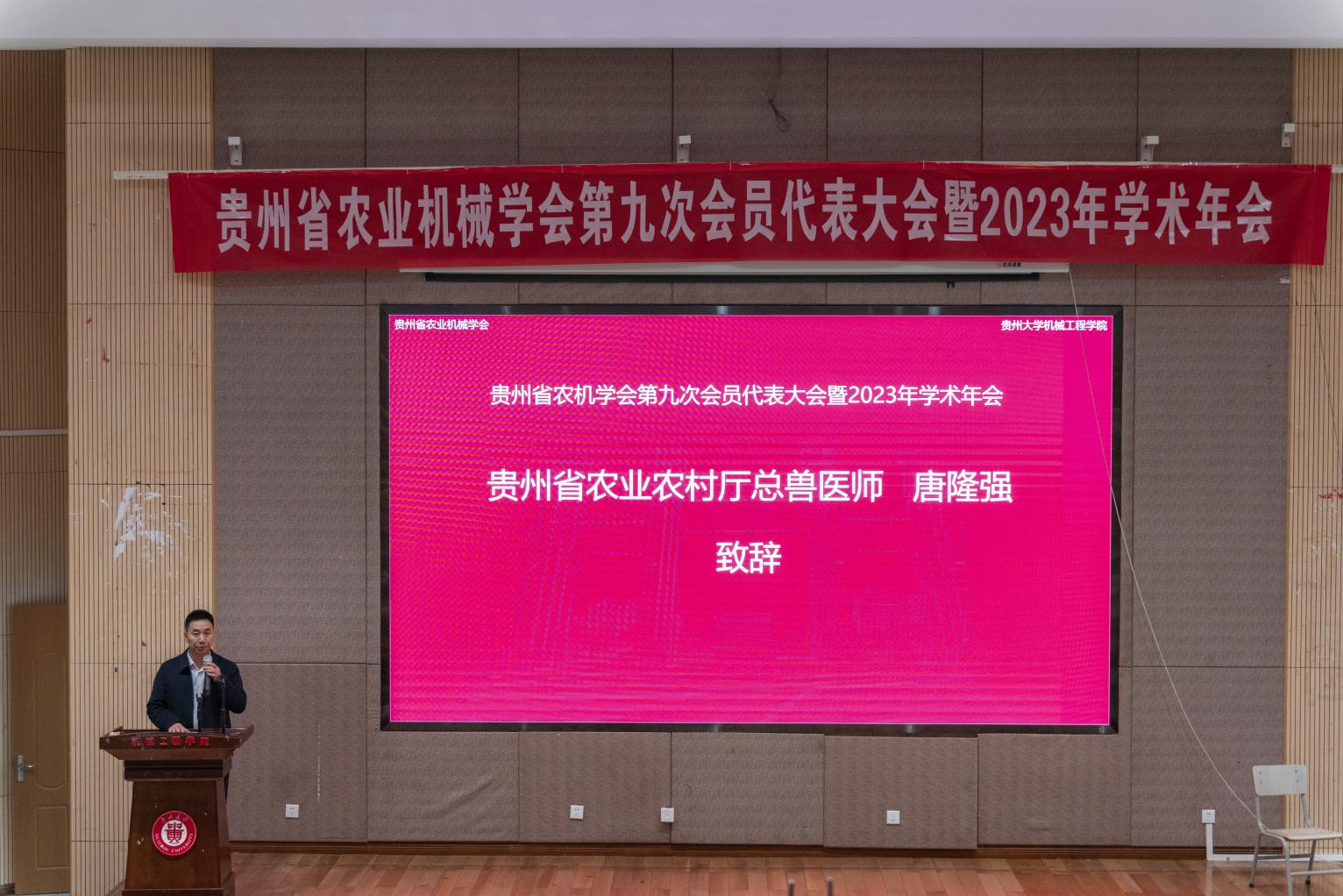 中國農(nóng)業(yè)機(jī)械學(xué)會(huì)秘書長趙鳳敏研究員、貴州省農(nóng)業(yè)農(nóng)村廳總獸醫(yī)師唐隆強(qiáng)致辭,貴州大學(xué)常務(wù)副校長張大林教授致歡迎辭,開幕式由貴州大學(xué)機(jī)械工程學(xué)院院長趙津教授主持。