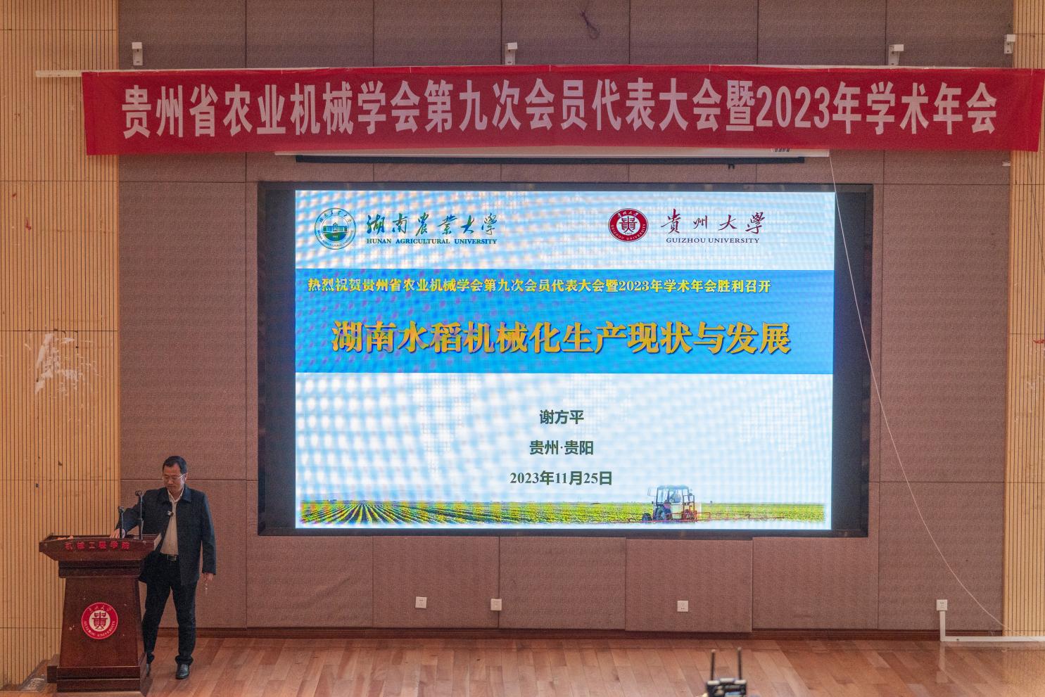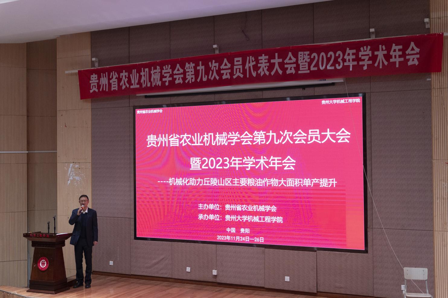 11月24日-26日,由貴州省農(nóng)業(yè)機(jī)械學(xué)會(huì)主辦,貴州大學(xué)機(jī)械工程學(xué)院承辦的“機(jī)械化助力丘陵山區(qū)主要糧油作物大面積單產(chǎn)提升”學(xué)術(shù)交流會(huì)暨貴州省農(nóng)機(jī)學(xué)會(huì)第九次會(huì)員大會(huì)在貴州大學(xué)召開。