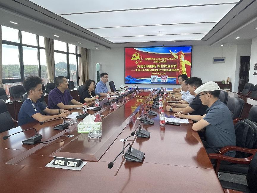 為深入學習貫徹習近平新時代中國特色社會主義思想,貫徹落實學校黨委關于開展黨建引領創新的工作要求,2023年8月12日,機械制造及其自動化教工黨支部曾與國藥集團同濟堂(貴州)制藥有限公司開展主題為“黨建引領創新,深化校企合作”的深化產學研合作交流主題黨日活動。國藥集團同濟堂(貴州)制藥有限公司總經理、黨委書記朱鶴、副總經理孫宜春、信息化主管牛明、工程部主管舜,機械制造及其自動化教工黨支部書記周鵬及相關黨員同志出席本次校企合作總結交流活動。