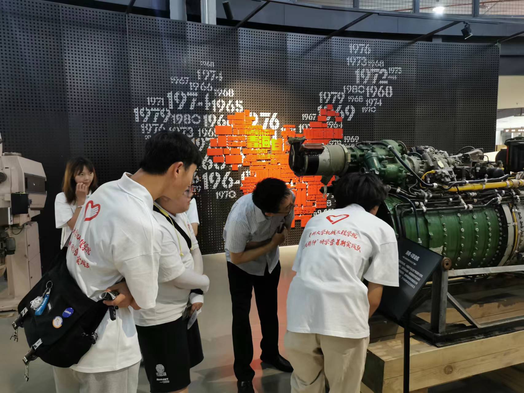 實(shí)踐隊(duì)員在博物館展陳的渦輪-6發(fā)動(dòng)機(jī)、電動(dòng)電控麻醉機(jī)、多功能機(jī)床等機(jī)械設(shè)備前駐足沉思,不時(shí)向指導(dǎo)老師提問、探討交流,在頭腦中搜尋與之相符的機(jī)械設(shè)計(jì)原理…參觀完露天展陳的機(jī)械設(shè)備,隊(duì)員們感慨我國裝備制造業(yè)的飛速發(fā)展,對三線建設(shè)之于貴州工業(yè)發(fā)展的重要意義有了更多的了解。