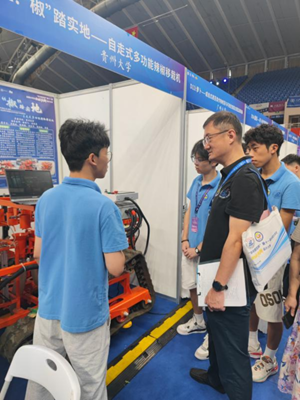 在此前的國賽第一階段評審中,貴大學(xué)子的表現(xiàn)同樣出色。在興農(nóng)機(jī)械賽道上,我校作品“辣椒井窖式自動移栽機(jī)”獲得國賽二等獎,“小型智能辣椒采收車”榮獲國賽三等獎;在仿生青蛙賽道上,我校作品“跳躍者”也獲得了國賽三等獎的榮譽(yù)。