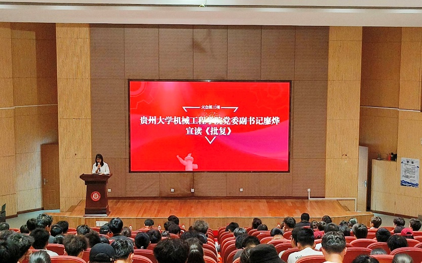 黨委副書記廖燁宣讀《關(guān)于同意召開貴州大學(xué)機(jī)械工程學(xué)院第十五次學(xué)生代表大會暨第二十一次研究生代表大會的批復(fù)》。